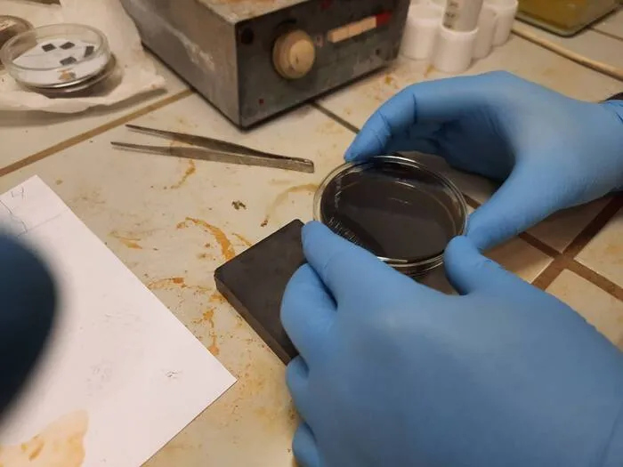 This project was done trying to recreate the process shown in NileRed’s video. I got to work a bit with a vacuum chamber and to work in a clean room. It was my first project that is chemistry related. Our setup was a bit sketchy tough, instead of the one presented in the video. We used a drill as our mixer, and we controlled it with a bench power supply. There was also a pH meter dipped in the solution to monitor the pH. A lot of times the process failed, because of various reasons, but we got it to work in the end.